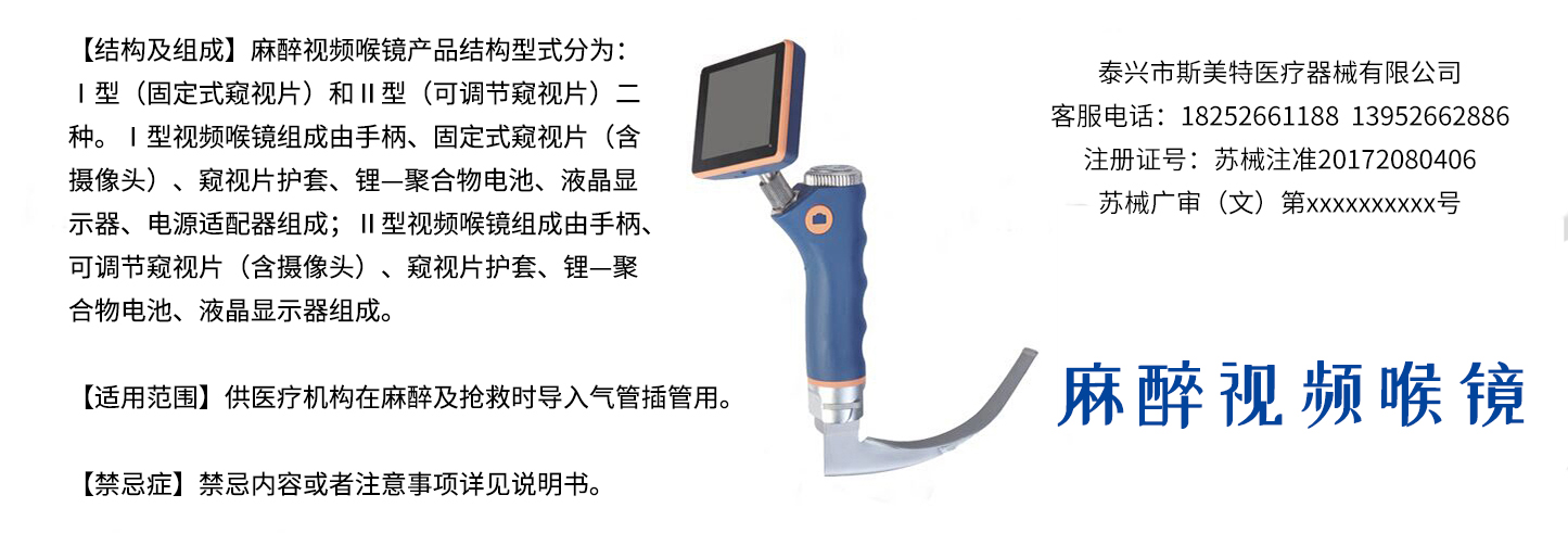 泰興市斯美特醫療器械有限公司是一家集麻醉視頻喉鏡研制、開發(fā)、銷售于一體的專業企業。近幾年來本公司通過不斷完善和改造,硬件設施與軟件管理達到標準。 本公司生產的麻醉咽喉鏡產品面向全國各省、市、自治區,部分產品遠銷美洲、歐洲、南非、東南亞等諸多國家及地區。置身中國經濟開放的背景,制定了醫藥板塊的戰(zhàn)略決策和醫療器械行業的發(fā)展趨勢,制定了面向未來,與時俱進的中長期發(fā)展規(guī)劃,確定了"以技術優(yōu)勢確立核心能力、